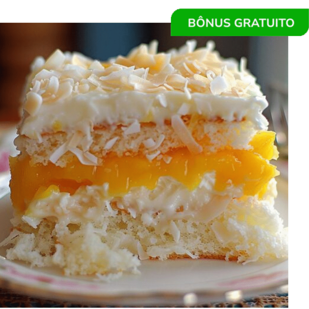 Bolo fofinho, recheado com creme leve, pedaços de abacaxi e coberto com coco ralado. Refrescante, delicioso e perfeito para gerar renda no delivery.